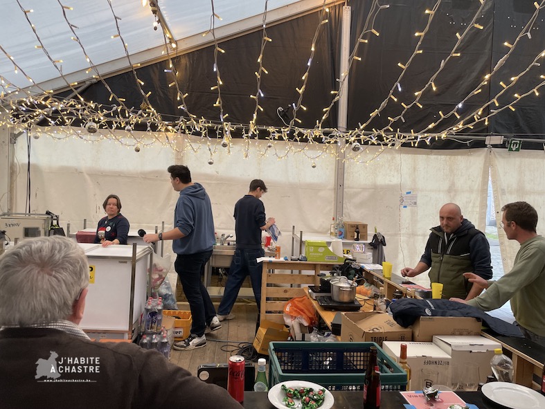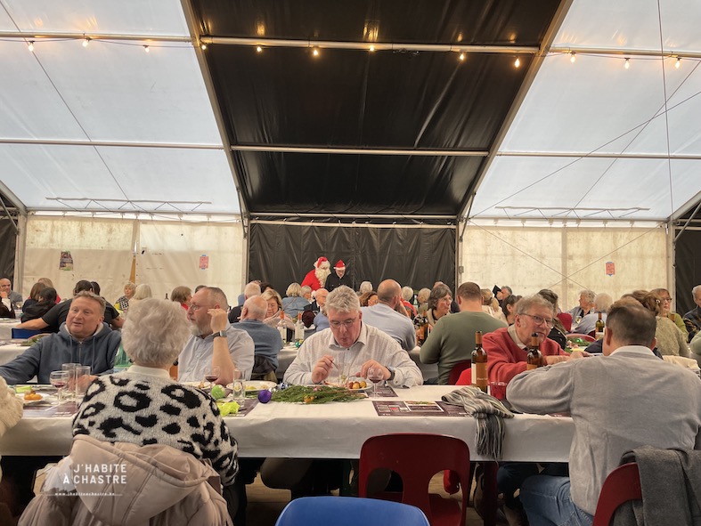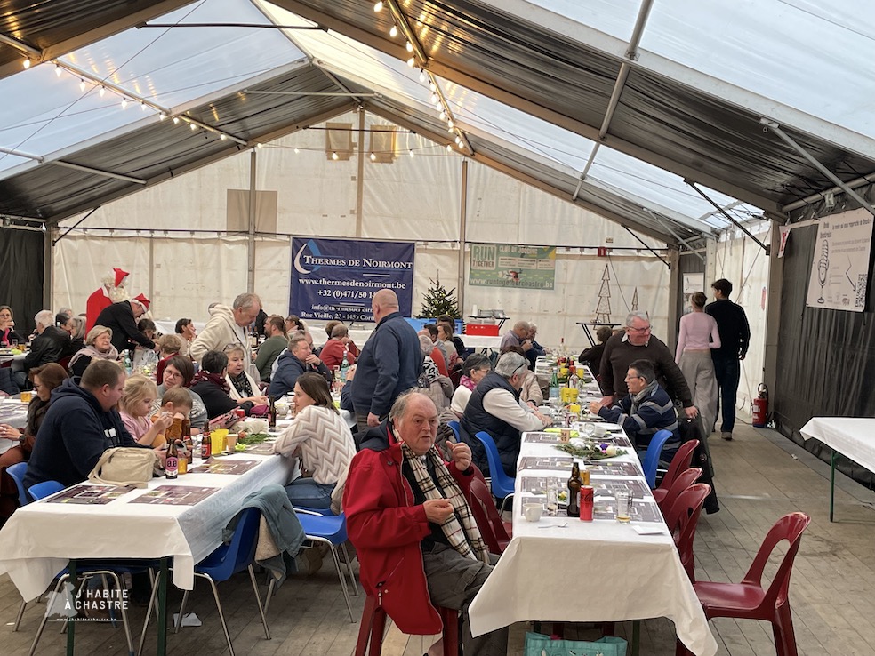 Les fééries se sont clôturées ce dimanche avec le petit-déjeuner de Noël, suivi d’un repas de Noël organisé par le Marché de Chastre et Onde Chastroise. Une bonne centaine de convives étaient attendus à midi sous le chapiteau. Au menu, des produits festifs tels que le boudin de Noël, du poulet ou encore du saumon, préparés à partir de produits issus du marché.