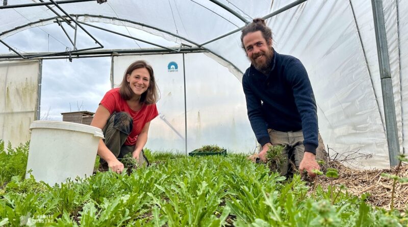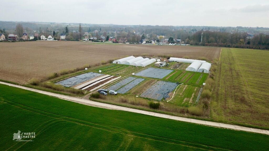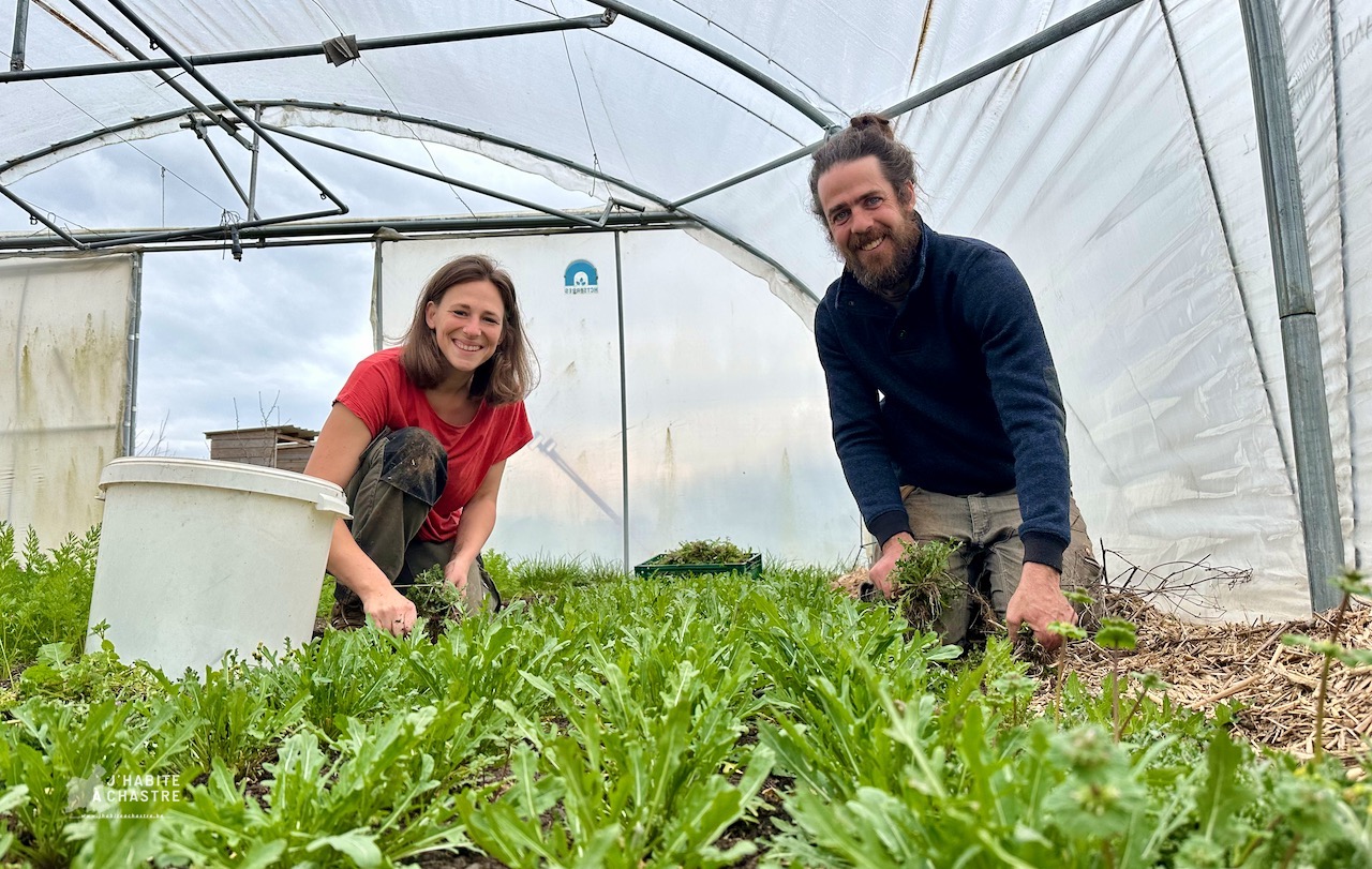 Avec sa compagne Sarah, François cultive depuis 2023 un peu plus d’un hectare à Blanmont, entre Chastre et Hévillers. Leur exploitation, La Terre du Milieu, produit une cinquantaine de variétés de légumes en agroécologie sans eau courante et sans électricité. Un choix assumé. « Pour deux, il ne faut pas plus », sourit François. Laitues, tomates, aubergines, courges, poivrons partent en paniers-abonnements ou sur trois points de vente : le jeudi dans leur local de Chastre, le vendredi au Petit Marché de Mont-Saint-Guibert, et le dimanche au marché de Chastre.